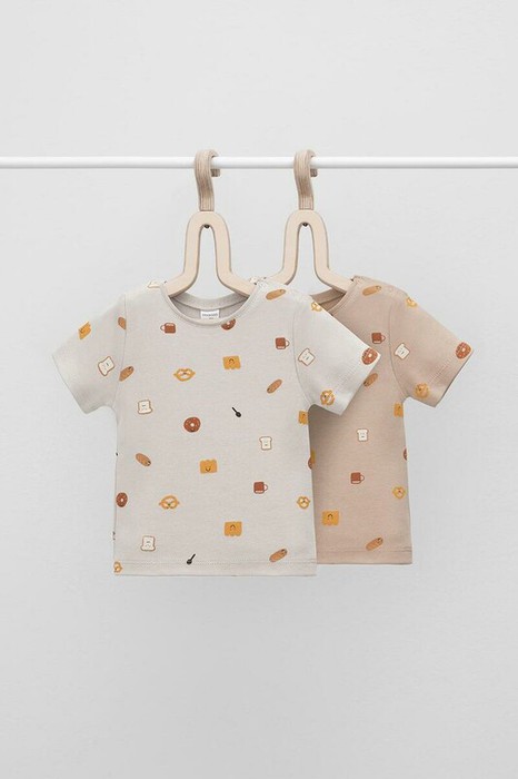 Футболки для мальчика в упаковке 2 шт из высококачественного трикотажного полотна. Оригинальная набивка выполнена из стойких гипоаллергенных текстильных красителей. Для удобства на плече застежка на кнопки.