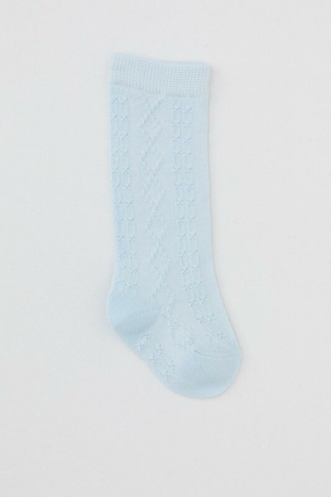 Гольфы для девочки, связаны ажурным геометрическим узором.
