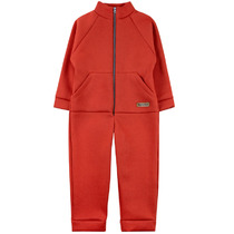 Флисовый комбинезон для мальчика с высоким воротником. Застёгивается на удлинённую молнию с мягкой защитой шеи и подбородка. Рукава и низ изделия на манжетах из  трикотажа в рубчик. Эластичная резинка по спинке обеспечивает идеальную посадку. Спереди удобный карман-кенгуру. Оригинальная набивка выполнена из стойких гипоаллергенных текстильных красителей. Комбинезон сохраняет цвет и форму после многократных стирок.