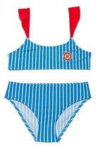 Слитный купальник на бретелях для девочки. Украшен оборками. Внутри подклад. Оригинальная набивка выполнена из стойких гипоаллергенных красителей.