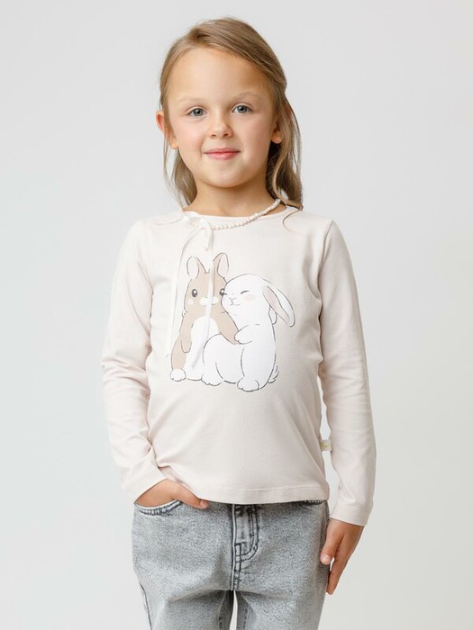 Лонгслив для девочки из гладкого трикотажа, произведённого из высококачественного натурального хлопка. Застёгивается на плече кнопки в размерах 92 и 98. Оригинальный принт выполнен из стойких текстильных гипоаллергенных красителей. Изделие сохраняет цвет и форму после многократных стирок. Все трикотажные полотна производятся в соответствии с нормами швейцарского сертификата ЭкоТекс.