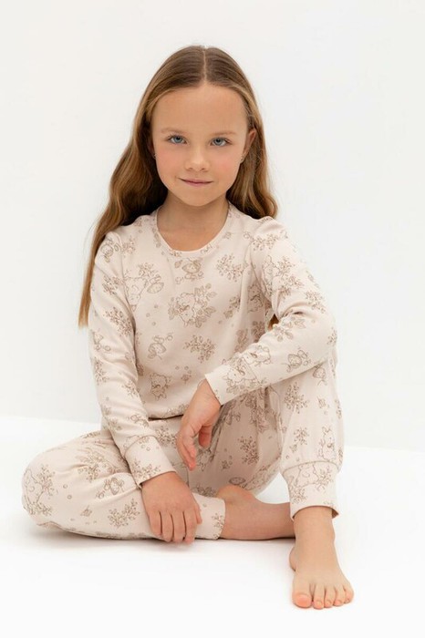 Трикотажная пижама из натурального хлопка. Джемпер с длинными втачными рукавами и брюки с эластичной резинкой в поясе. Мягкие манжеты на рукавах и по низу брюк. Оригинальная набивка выполнена из стойких текстильных гипоаллергенных красителей. Изделие сохраняет цвет и форму после многократных стирок. Все трикотажные полотна производятся в соответствии с нормами швейцарского сертификата ЭкоТекс.