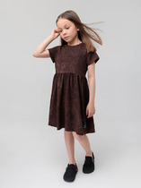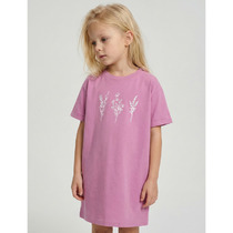 Платье для девочки из петельчатого футера на кнопках. Оригинальная набивка выполнена из стойких текстильных гипоаллергенных красителей.