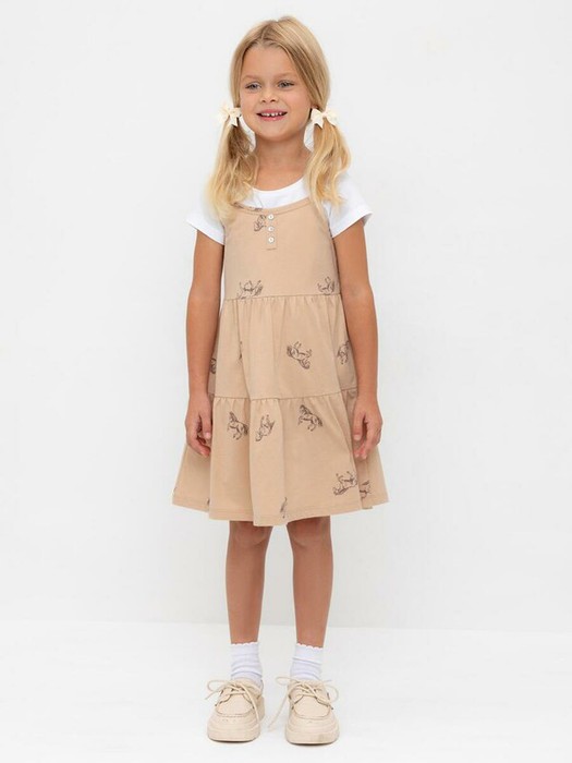 12.04 Crockid сарафан для дев КР 5796/нежный бежевый,милые лошадки к567
