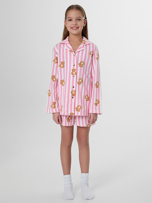 Комплект для девочек состоит из рубашки и шортов.