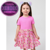 Платье А-силуэта. Спинка и перед цельнокройные. Короткие рукава-крылышки. Вырез горловины круглый. По спинке застежка-капелька на одну петлю WT4-6 и пуговицу d=10mm. Подкладка из трикотажного кулирного полотна.