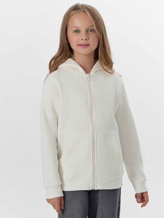 Жакет из трикотажного футера с теплым подчесом. Спущенная линия плеча гарантирует свободу движений. Прямой свободный силуэт, уютный капюшон, длинные рукава на манжетах, удобный карман-кенгуру, центральная застежка на молнию – эта модель наверняка понравится вашей девочке.