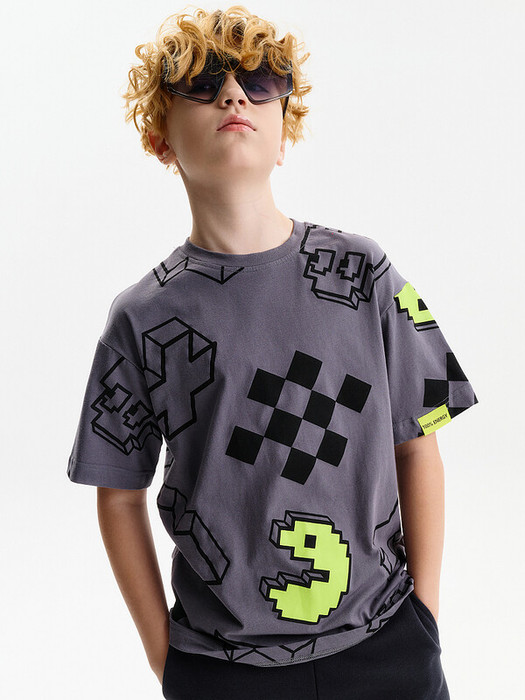 Футболка для мальчика свободного кроя - это идеальный выбор для активного ребенка. Вырез горловины обработан эластичной тканью — она прекрасно держит форму, не растягивается, при этом ребёнку удобно надевать и снимать футболку. Футболка летняя с принтом пакмен (Pacmen) в стиле Digital подойдет для юных геймеров и любителей аниме. Футболка y2k станет отличным дополнением для любителей кавай (kawaii) и японской культуры..Яркая спортивная футболка подходит как для подростков так и для малышей в детский сад. Подходит для любого времени года.