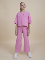 Комплект для девочки (кроп-топ и кюлоты), в котором собраны все самые актуальные тренды. Кроп-топ оверсайз-силуэта с сильно спущенным плечом дополнен утяжками по низу, с помощью которых можно регулировать объём и менять силуэт изделия. Брюки на широкой резинке с внутренней регулировкой объема шнуром. Благодаря особенностям кроя костюм долго будет "расти" вместе с ребенком. Комплект выполнен из трикотажного полотна с модной "вафельной" текстурой. В составе ткани преобладает хлопок, поэтому модель комфортная, приятная на ощупь, в ней не будет жарко летом. Эластан в составе ткани помогает изделию сохранять форму. Ткань проста в уходе. Изюминка топа — лаконичная вышивка в виде трёх цветков. Комплект идеально сядет на девочку любой фигуры, можно покупать без примерки. Костюм для настоящих модниц, в нем каждая девочка будет выглядеть стильно и эффектно.