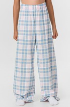 Брюки прямого силуэта. Посадка на талии. Пояс отрезной по переду гладкий, задняя деталь пояса с резиной внутри 40RV. По переду изделия карманы с отрезным бочком. Низ изделия обработан швом в подгибку.