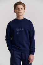 Базовый бомбер из хлопковой пряжи для мальчика. Застежка- молния, по низу рукавов и изделия эластичная вязка, украшенная декоративными полосками.