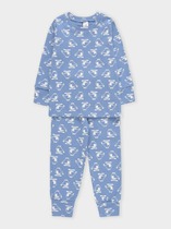Комплект хлопковой пижамы из джемпера и брюк. Джемпер свободного кроя дополнен эластичной горловиной и манжетами. Брюки среднего объема, эластичный пояс обеспечит комфорт и идеальную посадку. По низу брюк эластичные манжеты.