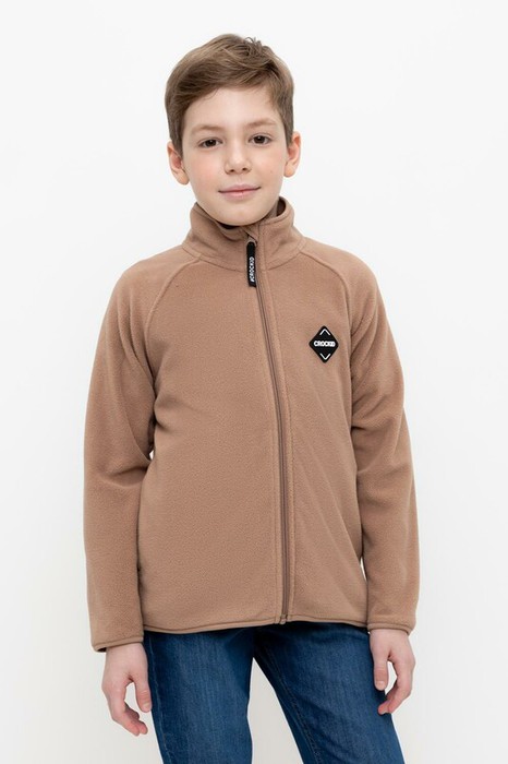 Флисовая куртка для мальчика. У изделия удлинённая спинка, высокий воротник, предусмотрена защита шеи и подбородка. Рукава-реглан и низ изделия обработаны эластичным кантом для лучшего прилегания к телу, по бокам два кармана. Куртка сохраняет цвет и форму после многократных стирок.