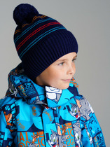 Тёплая зимняя шапка с подкладом из хлопкового трикотажа. Верх выполнен из полушерстяной пряжи. На макушке помпон.