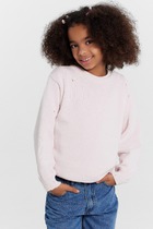 Джемпер свободного силуэта. Рукава длинные, втачные. Линия плеча спущена. Перед и спинка цельнокроенные. Горловина круглой формы обработана обтачкой из рибаны. Шов притачивания обтачки распошит. По низу рукавов и джемпера притачены манжеты и пояс из рибаны.