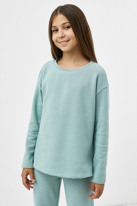 Специально для девочек! Джемпер из трикотажного селаника – невероятно нежного и приятного к телу полотна. Силуэт прямой, длина до середины бедер, рукава длинные. Спущенная пройма дарит особый комфорт. Нижние части боковых швов – с небольшими разрезами. Именно такой джемпер вы искали!