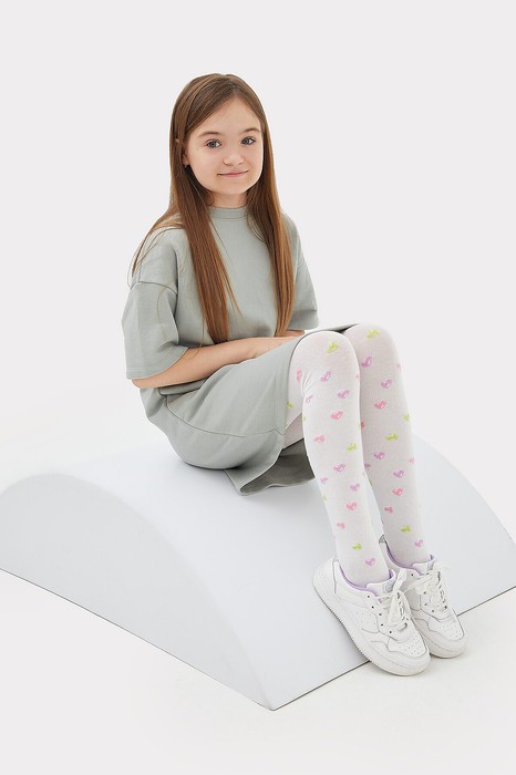 Гладкие колготки с рисунком в виде сердечек.