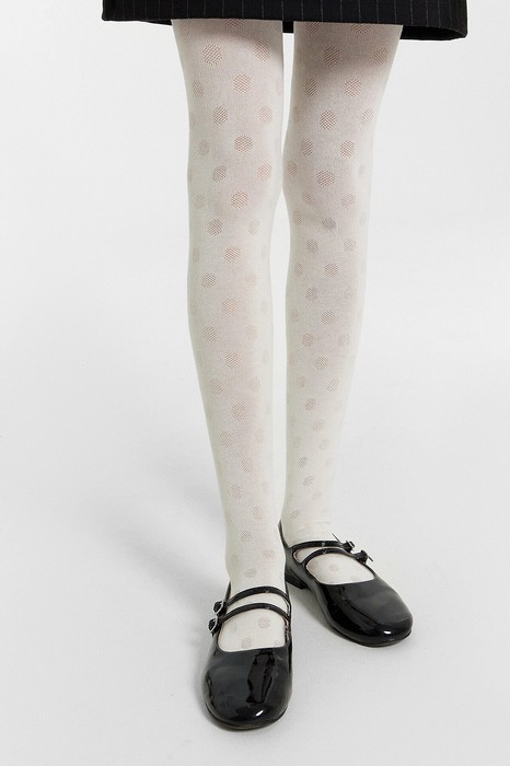 Рис.3219 Колготки гладкие с рисунком в виде крупного горошка, выполненым перекидным переплетением.