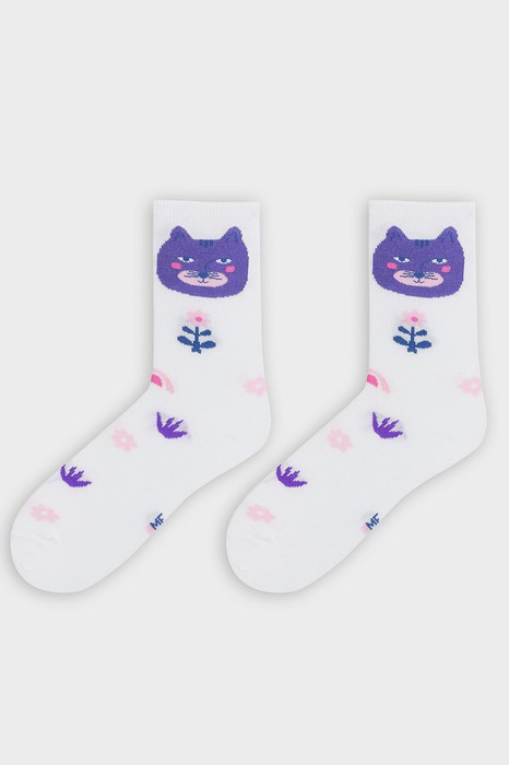 рис.3063 Детские классические носки с рисунком в виде котиков и цветочков.