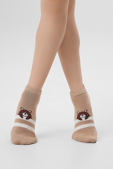 рис.3180 Детский укороченный носок с рисунком в виде полосок и мишки.