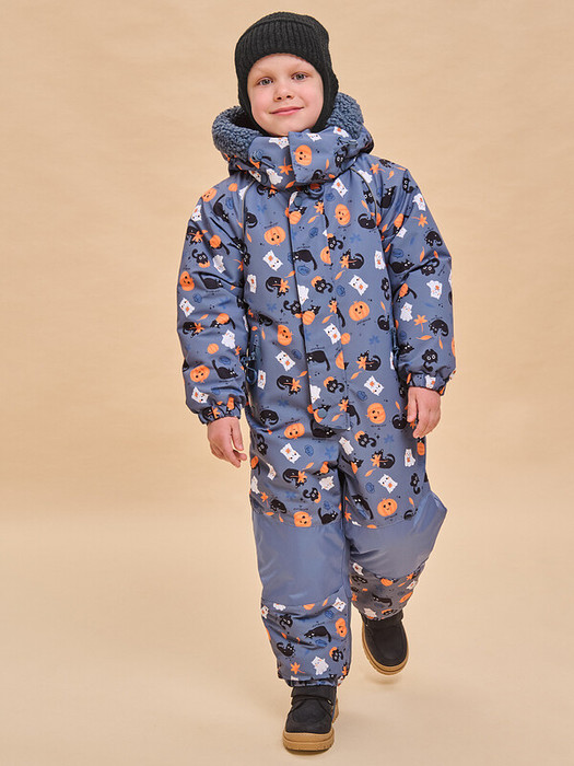 Комбинезон зимний детский из мембранной ткани. Подходит и для мальчиков, и для девочек. Модель свободного объёма с рукавами кроя реглан подарит ребёнку комфорт и не будет стеснять его движений. На внешнюю поверхность материала нанесена водоотталкивающая пропитка (DWR), она задерживает грязь и влагу снаружи — ребёнок не промокнет от снега, а комбинезон легко отстирается. Также есть дополнительная пропитка на внутренней стороне ткани — для более надёжной защиты от промокания. Капюшон двухшовный, что обеспечивает анатомически правильную форму и комфортную посадку по голове. Капюшон не отстегивается, предусмотрена регулировка объема эластичными шнурами с пластиковыми стопперами. Внешний край капюшона декорирован мягким искусственным мехом, по текстуре напоминающим «барашка». Из этого же материала выполнена внутренняя подкладка капюшона, она комфортная, тактильно приятная. Удобная центральная застёжка на тракторную молнию с двумя пуллерами. Тканевый стоппер защищает подбородок от зажима молнией. Фиксирующая строчка предохраняет планку от «заедания» в процессе застёгивания. Комбинезон тёплый — для оптимальной защиты от ветра и холода центральная молния дополнительно закрыта ветрозащитной планкой на кнопках и липучках (велькро). Спинка по талии присборена на внутреннюю резинку — зимний мембранный комбинезон для ребенка безупречно садится по фигуре и не выглядит мешковато. Внутри комбинезона эластичные лямки — есть возможность снимать только верхнюю часть в помещении. Карманы с боковым входом закрываются на молнию, по контуру резиновая заливка — содержимое карманов не промокнет от снега во время активных игр на свежем воздухе. Внутри карманы утеплены мягким флисом. Замок дополнен тканевыми стопперами, что предохраняет его от разрыва. На пуллере эластичный запаянный шнур — ребёнку легко открывать и закрывать даже в варежках. Манжеты рукавов и брючин на комфортных широких резинках, это предохраняет от попадания внутрь снега. На муфтах брюк антискользящая резинка. Комбинезон дополнен съёмными силиконовыми штрипками. Область колен и нижняя часть спинки усилены более плотной тканью — можно смело кататься с горки и ползать на коленках сколько захочется. В каждом изделии нейм-лейбл! Ребёнок не потеряется и не потеряет комбинезон! Световозвращающие канты в проймах переда и спинки — безопасность в тёмное время суток. Модель универсальной расцветки с симпатичным принтом одинаково классно смотрится и на мальчиках, и на девочках. Комбинезон на молнии неприхотлив в уходе — ухаживать согласно указанным на вшивных ярлыках рекомендациям. Изделие выполнено из полиэстера с мембраной — оно не только защищает от холода и влаги, но и хорошо пропускает воздух, давая коже ребёнка дышать. Подкладка из мягкого, тёплого и дышащего флиса (по переду и спинке). В рукавах и штанинах подкладка из тонкого и гладкого полиэстера —  благодаря этому ребенку легко надевать комбинезон, руки и ноги не путаются в рукавах и штанинах, а легко проскальзывают. Зимний комбинезон детский идеален для маленьких детей дошкольного и младшего школьного возраста. Рекомендуемый температурный режим: не ниже минус 25 градусов. В изделии использован один из высокотехнологичных утеплителей — феллекс 260 г/м2. Дышащие свойства мембраны: не менее 3000 г/м2/сут. 