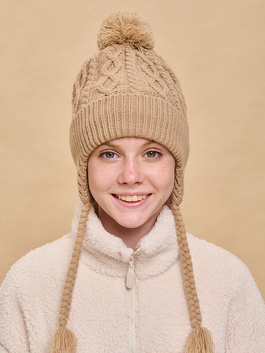 Стильная и уютная детская шапка с помпоном. Нейтральный дизайн делает её подходящей и мальчикам, и девочкам. Модель с отворотом и цельновывязаными функциональными ушками с завязками выполнена из 100% акрила. Материал тёплый, приятный на ощупь и очень комфортный. Шапку легко стирать — она не растягивается, не мнётся и сохраняет первозданный вид надолго. Отличные терморегулирующие свойства акрила позволяют носить изделие в холодную погоду. Внутри флисовая подкладка. Она мягкая и обеспечивает дополнительную защиту от холода. Модель хорошо садится по голове ребёнка, плотно прилегает, не сползает. Основная вязка шапки — модные текстурные “косы”. Цельновывязаные ушки по бокам прикрывают уши ребёнка от холода и ветра. Декоративные завязки выполнены в виде косичек с кисточками — оригинально и стильно. Помпон выполнен из ниток в тон изделия. Эта модель станет отличным подарком для маленьких модников!