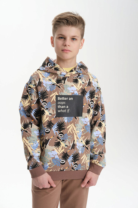 Худи для мальчика без начеса – актуальная вещь в любом сезоне, будь то весна, лето или осень. Кофта спортивная для мальчика выполнена из плотного футера-петля, который отлично согревает в прохладную погоду и при этом хорошо пропускает воздух – ребенок активно двигается, играет, не потеет. Толстовка свободного покроя оверсайз со спущенным плечом, углубленной проймой. Рукава а также низ изделия на манжете из рибаны. Кофта без карманов. Капюшон объемный, без регулировки, отлично держит форму. Размерный ряд подходит как для малышей так и для подростков.