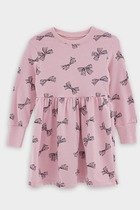 Платье полуприлегающего силуэта. Рукав втачной короткий. Горловина круглая с воротником стойкой. Перед и спинка цельнокроеные. Низ рукавов и изделия обработаны швом в подгибку на 2-х игольной плоскошовной машине.