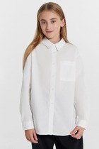 Блузка для девочек. свободного силуэта из ткани. По переду обработана застежка на пуговицы d=10mm и петли. Рукава короткие, втачные, слегка спущены. Нижние срезы изделия и рукавов обработаны швом в подгибку.
