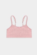 Удобное и функциональное бюстье для девочек. Выполнено из хлопкового трикотажа с небольшим добавлением эластана. Чашки на подкладке, бретели регулируются по длине сзади. Миниатюрный бантик на ластовице делает бюстье максимально милым!