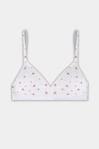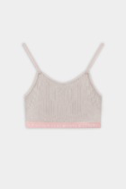 Хлопковое бюстье прилегающего силуэта для девочек. Выполнено из легкой и приятной к телу трикотажной рибаны. Вырез горловины и проймы окантованы эластичной тесьмой. На бретелях есть кольца-регуляторы. По нижнему краю бюстье расположена удобная и стильная жаккардовая тесьма. Идеально!