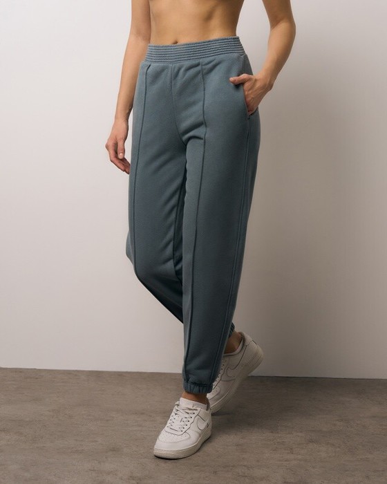 Свободные брюки BLOOMERS по передним деталям с застроченной стрелкой, высокая талия, карманы в шве, зауженные к низу,низ на резинке. Пояс из основной ткани,отстрочен