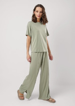 Джоггеры свободного кроя с боковыми карманами, собранные внизу. Широкий эластичный пояс со шнуром.