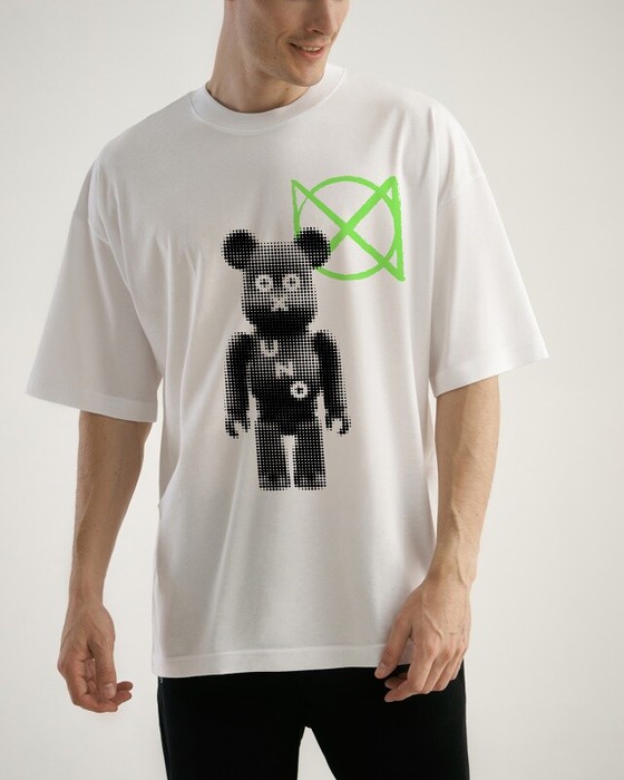 Футболка свободного силуэта. Спущенное плечо. Горловина из двух деталей, из рибаны.