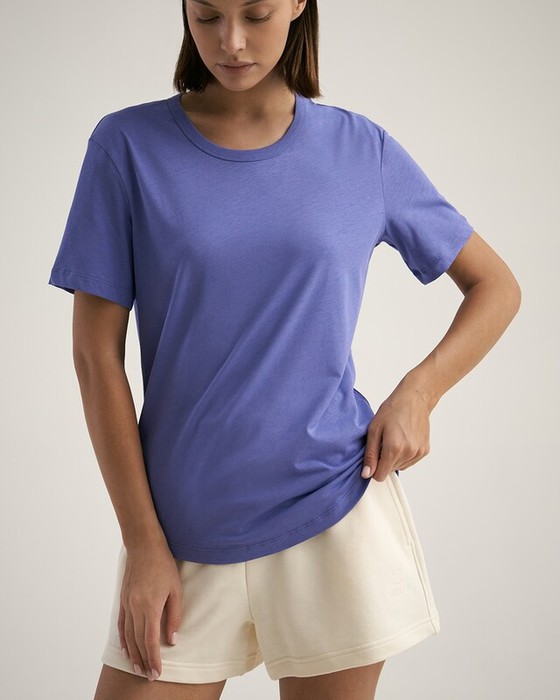 Женская футболка полуприлегающего силуэта с фигурным низом. Горловина окантована.