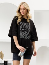 Boyfriend крой, укрепление по горловине спинки, круглый вырез. Горловина рибана. Отстрочка по горловине переда