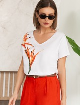 Женская футболка полуприлегающего силуэта. Горловина окантована.