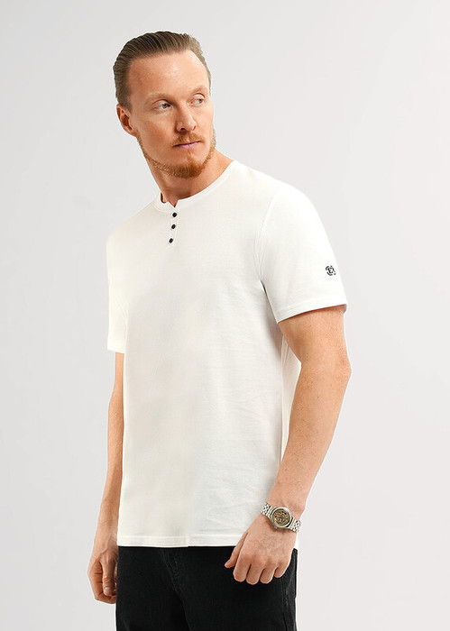 Футболка из фактурного полотна ""пике"". Интересное звучание модели придаёт имитация планки и принт. Такая модель разнообразит любой образ и прекрасно подойдёт к спортивным брюкам или джинсам.