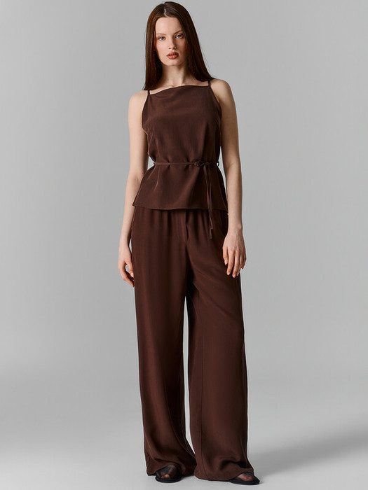 Брюки прямые свободные, посадка средняя. Пояс цельнокроеный с эластичной тесьмой внутри (20мм 20RV). С внутренней стороны пояса пробиты петли и втянут шнур-бейка из основного полотна. На деталях переда обработаны карманы-хулиганы. Подкладка карман из основного полотна. На правой детали переда имитация гульфика. Нижние срезы обработаны швом вподгибку с закрытым срезом.