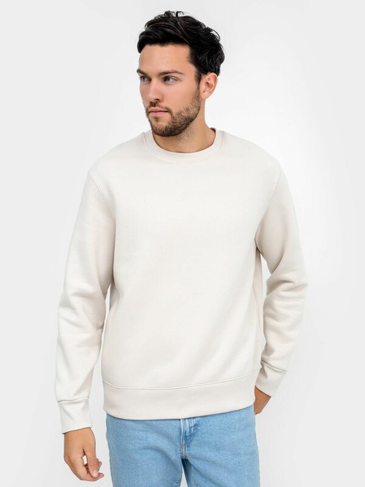 Джемпер из трикотажного футера с теплым подчесом. Длина до середины бедер, силуэт прямой. Линия плеча спущена. Рукава длинные, с притачными манжетами.  Горловина круглой формы. Отличный выриант для стильных городских образов!
