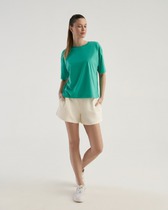 Удлиненная свободная футболка из мягкого футера с рукавами наизнанку.