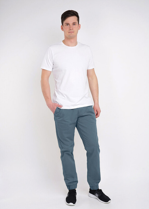 Мужские хлопковые джоггеры средней посадки на резинке по низу. Удобство обеспечивается за счет карманов, а регулировка талии благодаря шнуру с наконечниками. Такие брюки можно сочетать в спортивном или повседневном образе с любыми футболками.