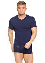 Фуфайка базовой посадки, v-образный вырез горловины, короткий рукав.