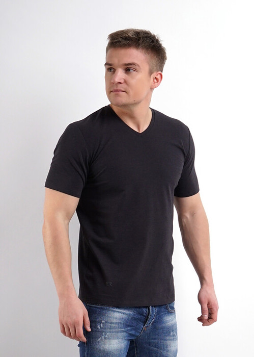 Фуфайка базовой посадки, v-образный вырез горловины, короткий рукав.