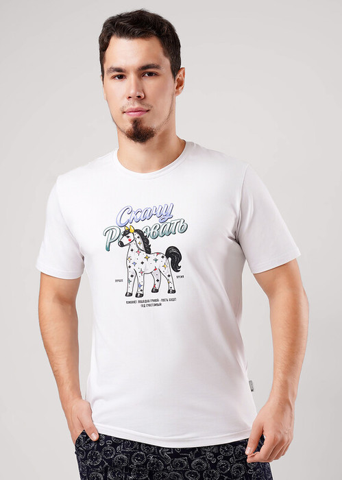 Футболка мужская с коротким рукавом и округлой горловиной, из дышащего хлопкового трикотажного полотна с добавлением эластана для прочности. Оригинальность модели придаёт авторский принт. Создай свой стильный образ вместе с Clever .
