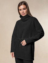 22.03 Vilatte Джемпер с объемным воротом и шнуром на талии из теплого футера-тр