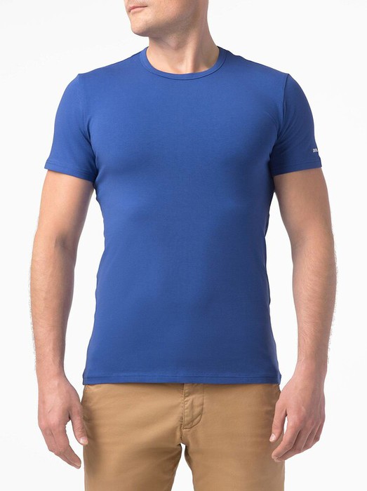 Футболка из хлопка с коротким втачным рукавом и круглым вырезом горловины станет лаконичным дополнением базового гардероба.