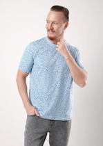 Фуфайка мужская из однотонного трикотажного полотна с коротким рукавом. Горловина круглая обработана обтачкой. Низ рукава обработан манжетами. Обтачка и манжеты изделия из контрастного отделочного полотна.