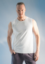 Хлопковая майка без рукавов идеально дополнит повседневный и домашний мужской гардероб.