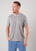 Фуфайка с коротким рукавом среднего объема, с оригинальным принтом, круглым вырезом горловины, которая оформлена обтачкой из рибаны.